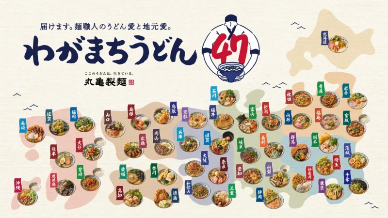丸亀製麺:「わがまちうどん47」開催!都道府県別の特徴的なオリジナルうどんを限定販売。全国まわる修行もあるよ。10/21〜なくなり次第終了